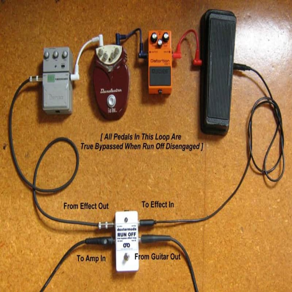 I’ve been making effect pedalboards for professional musicians for the past 40 years and this particular pedal I’ve made multiple times for my clients. Basically from right to left the upper jacks are SEND/RETURN and the lower ones are INPUT/OUTPUT.- It can have several uses within the connections in an effect pedalboard, being TRUE BYPASS you can keep the preferred or clean sound in your series of effects by INPUT/OUTPUT and add another line of effects to your sound by SEND/RETURN in a single action of the switch of this pedal. For other ideas on how to use it you can contact me. Thank you.